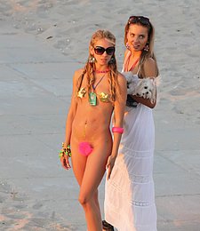 Sexy naked teens play together at a public beach